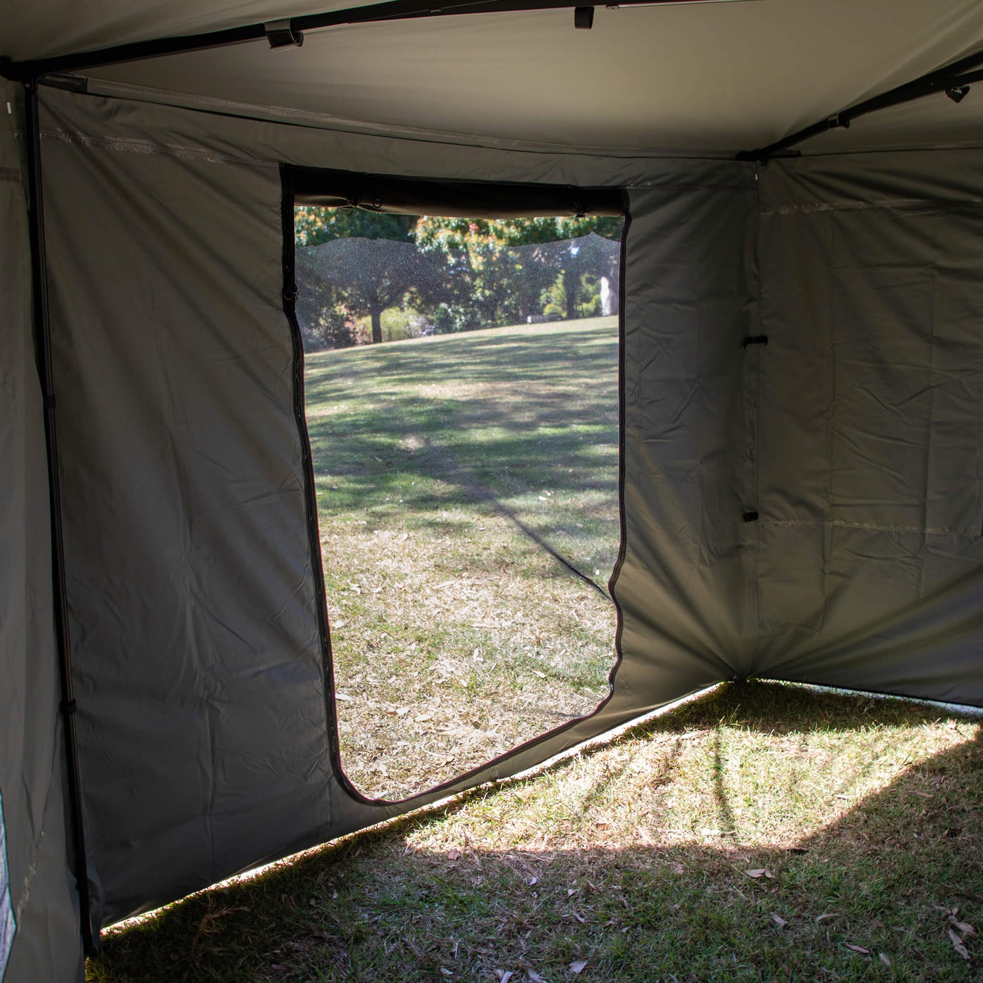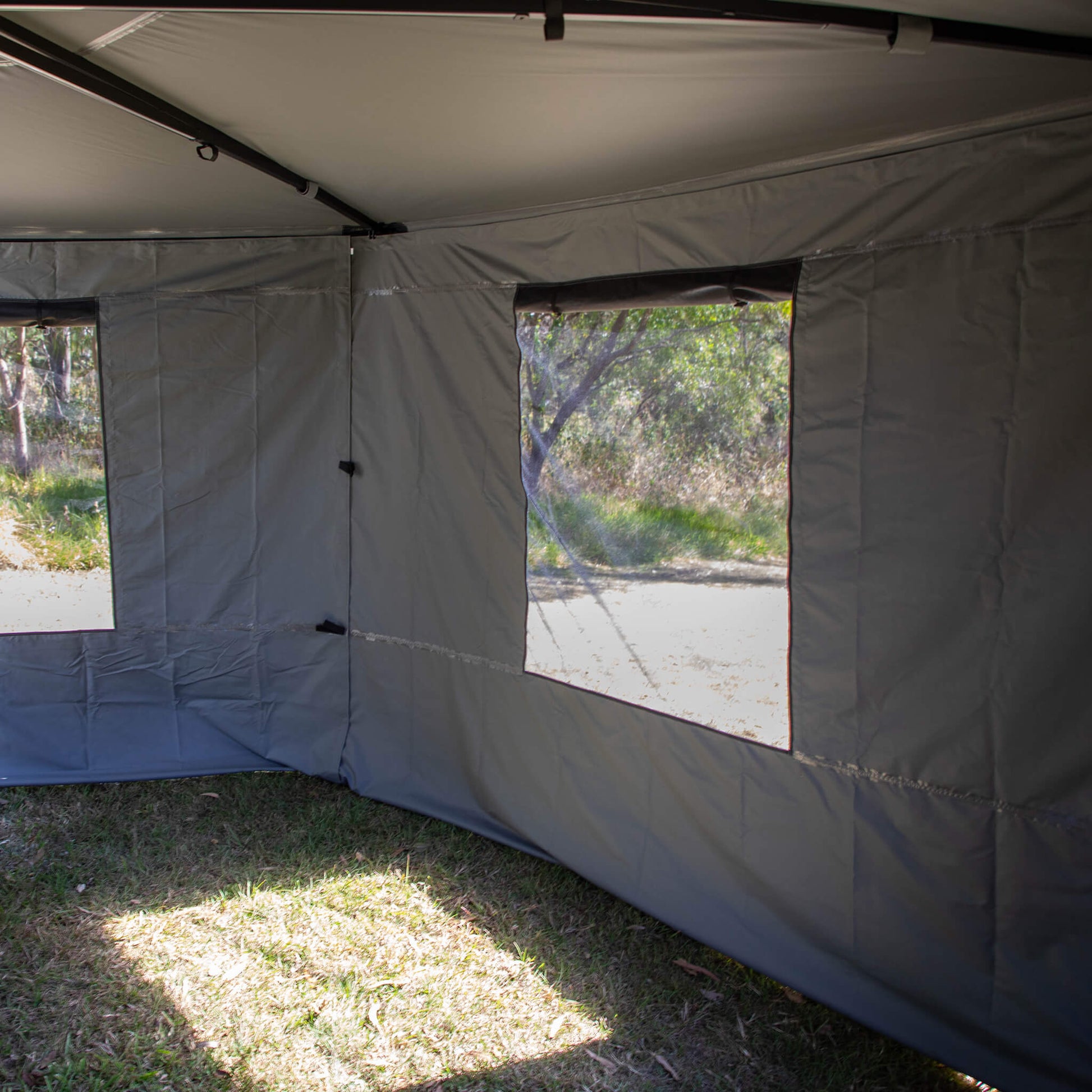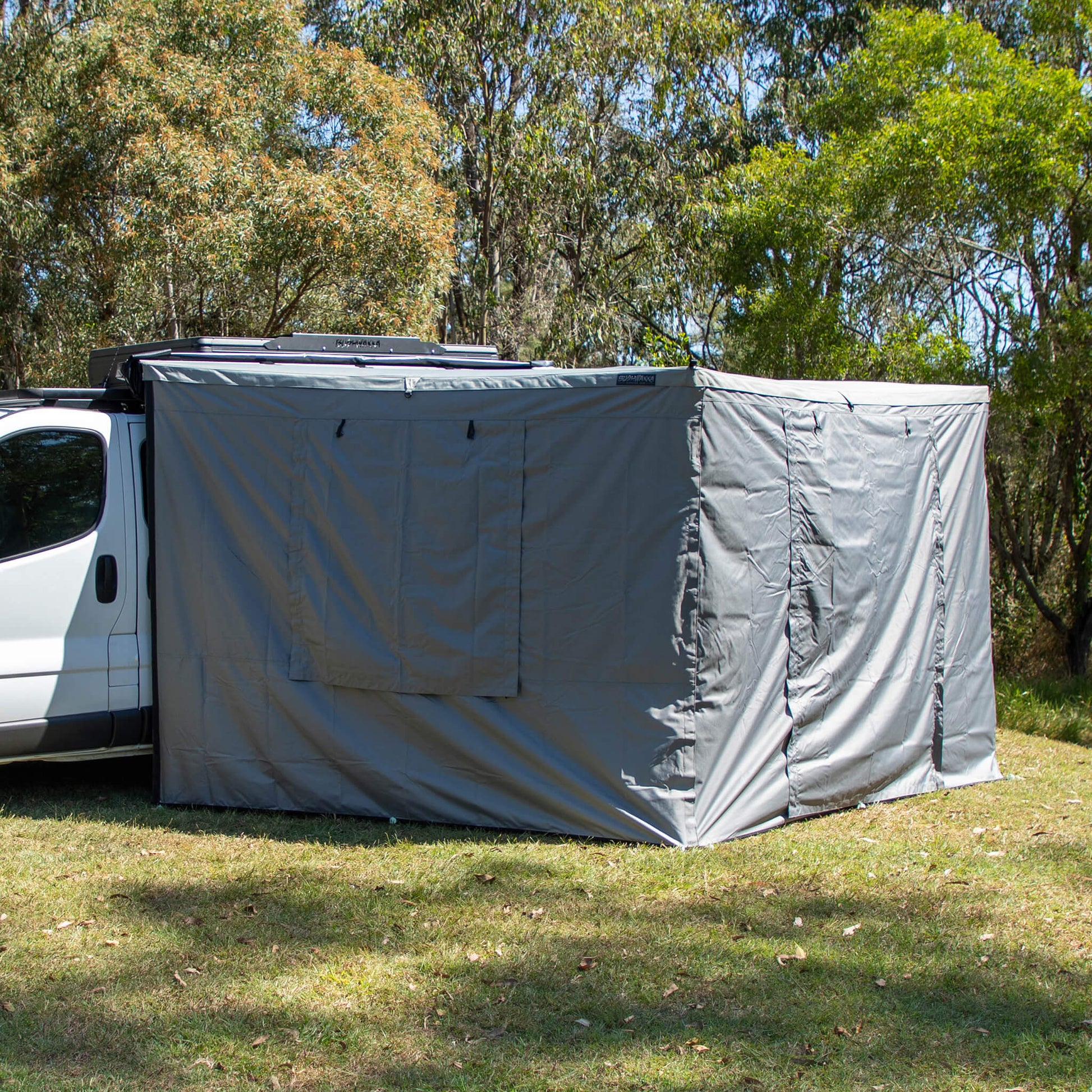 - 1x Extreme Single Wall (2700mm) – with Door: Convenient door panel that can be positioned at either the front or rear of the awning.