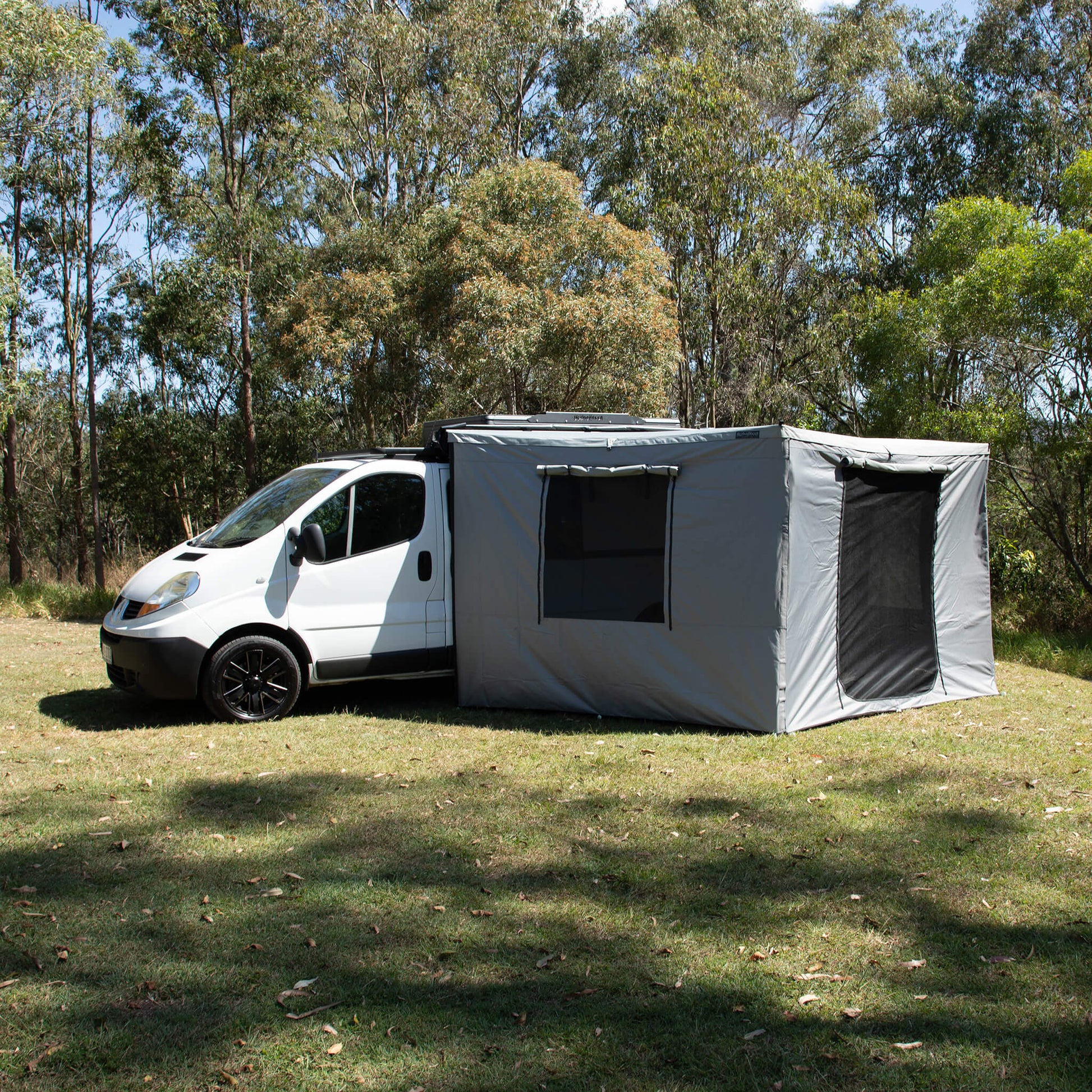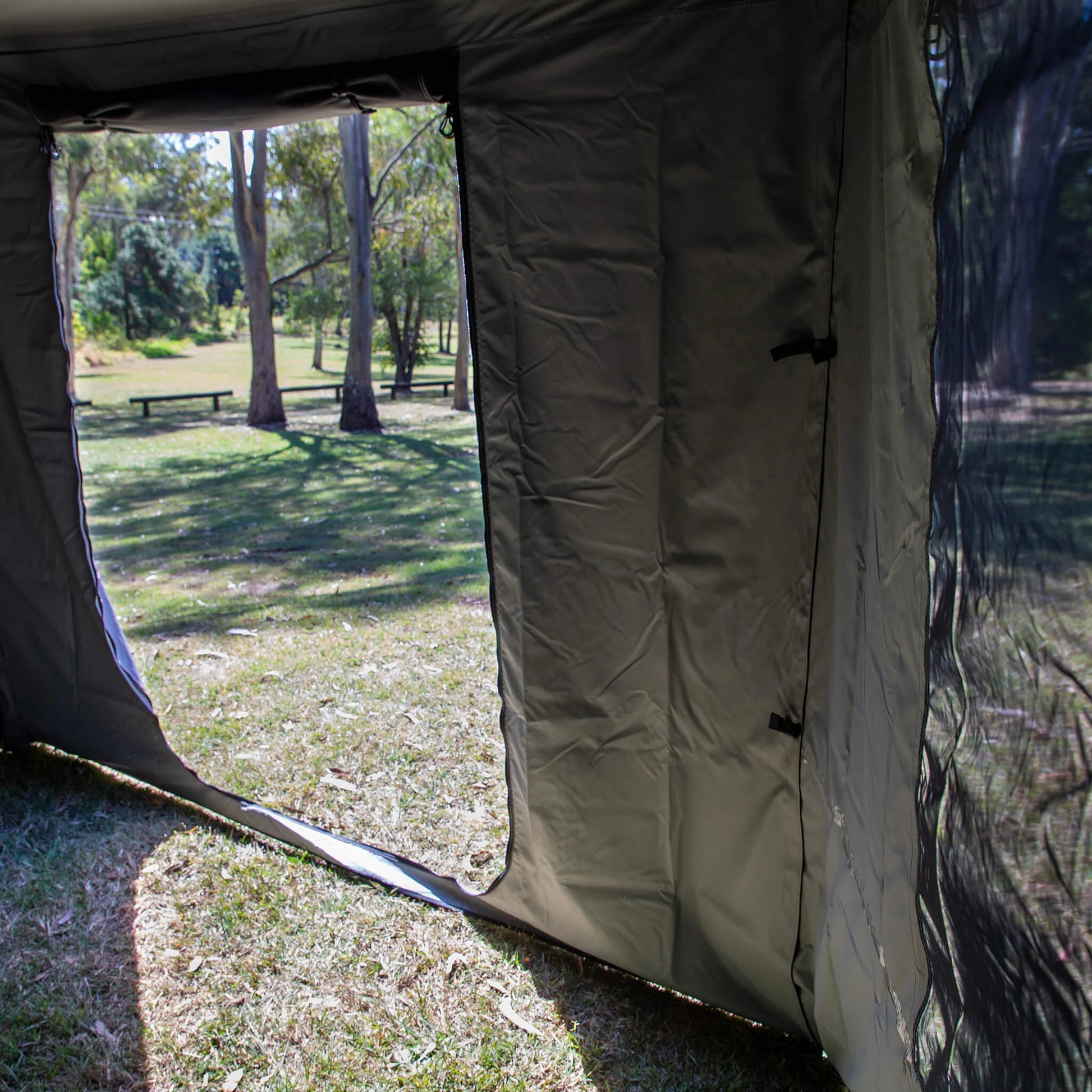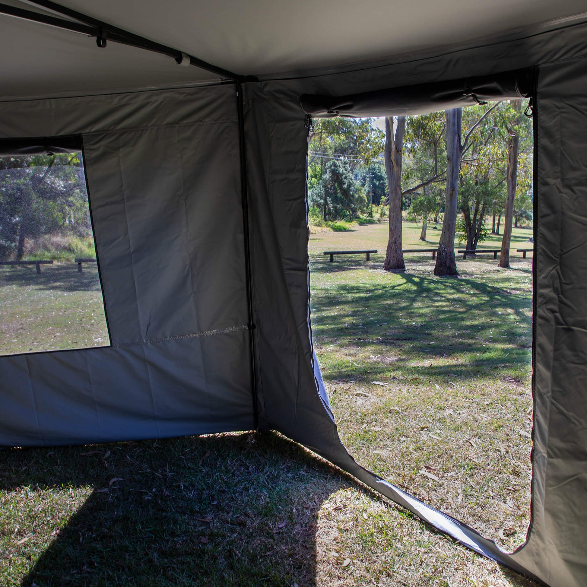 - 1x Extreme Single Wall (2700mm) – with Door: Convenient door panel that can be positioned at either the front or rear of the awning.