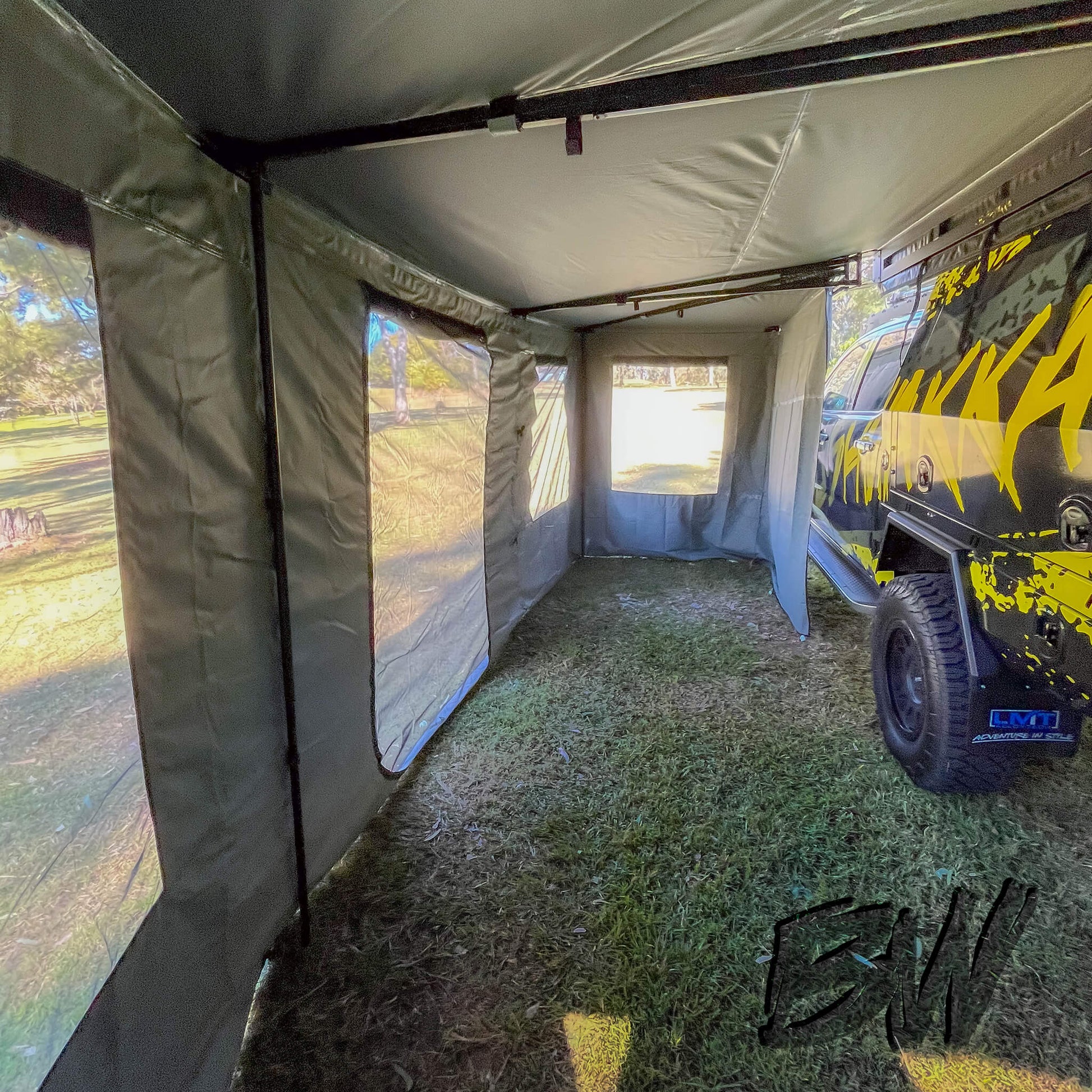 Product Description The Extreme Darkness XL Squared Wall Kit is designed to provide a complete enclosure for your Extreme Darkness XL Squared awning, offering flexibility and protection. Perfect for all-weather camping, the kit includes a mix of solid, window, and door panels with midge netting, reinforced by extra strong Velcro and durable 600 denier ripstop canvas.